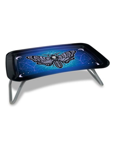 Your lazy weekend mornings just got a little better! This adorableDeath Moth Pop-Up Tray is perfect for snacking during a movie marathon or for a romantic breakfast in bed. Dimensions: 21" H x 13" W x 12" D Material: Tin Adjustable legs Care: Hand wash Imported.