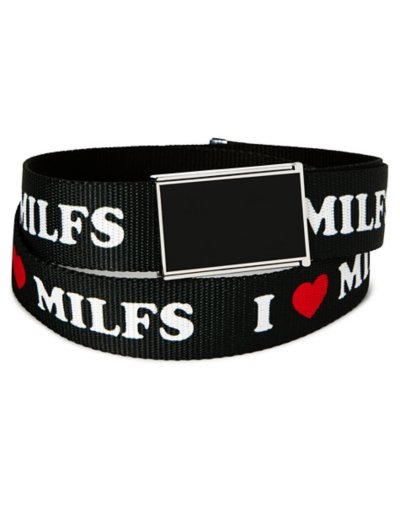 Let your belt do the talking! This hilarous I Heart MILFs belt by Danny Duncan is the perfect accessory for anyone who loves older ladies. Officially licensed Exclusively at Spencer's Material: Polyester Care: Spot clean Imported One size fits most.