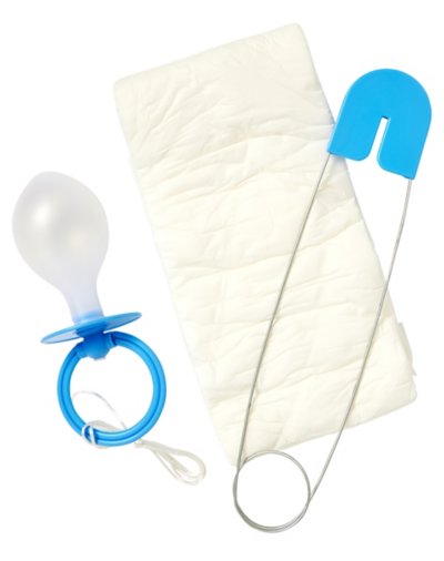 Get in touch with you inner child with this Big Baby Costume Set.Complete with giant diaper, pin, and pacifier, this set of funny Halloween accessories will have everyone guessing how old or at least how mature you are!PlasticIncludes:PinPacifier Diaper.