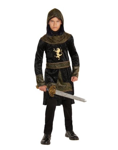 Hoping to become the ultimate warrior this Halloween? Get ready for battle when you rock this Dark Knight Tunic Costume. This stylish outfit features gold tone accents, a cool logo, and an attached hood, transforming you into an absolute savage. Includes: 1 Tunic with an attached hood Crewneck Long sleeves Pullover style Material: Polyester Care: Spot clean Imported Note: Pants and shoes sold separately.