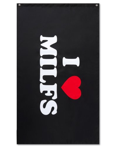 Nobody loves MILFs more than you, and it's about time everyone knows it! Show it off when you display this officially licensed I Heart MILFs Flag, which features Danny Duncan's iconic art. Officially licensed Exclusively at Spencer's Dimensions: 36" H x 60" W Material: Polyester Care: Spot clean Imported.