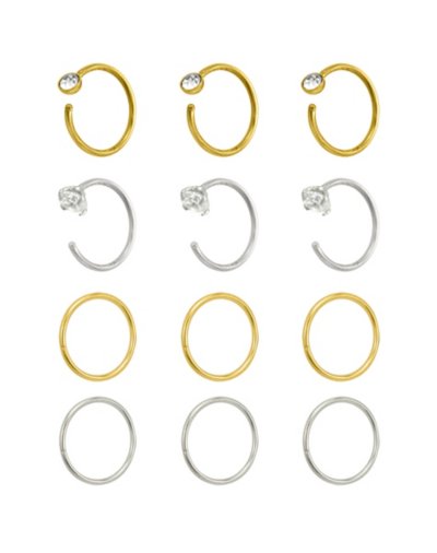 Buy Multi-Pack CZ Seamless Hoop Nose Rings and Half Hoop Nose Rings 12 Pac for $26.99 at @ Spencersonline.com