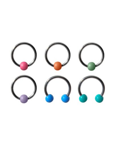 Includes: 6 Horseshoes Piercing Type: Multiple Barbell Material: 316L surgical steel Gauge: gauge/1.2mm Externally threaded closure Jewelry Care: Clean with antibacterial soap and warm water Piercing Care: Clean withH2Ocean Aftercare Spray(sold separately) or saline solution Imported Note: Do not use any harsh, alcohol-based chemicals as this may cause tarnishing Surgical steel may contain trace amounts of nickel Do not over-thread or apply excess pressure when adding/removing beads as breakage could occur Wear in healed piercings only. If irritation occurs, remove immedi.