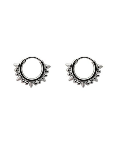 Silvertone Spike Hoop Earrings