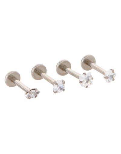 Buy Multi-Pack Square and Oval CZ Titanium Labret Lip Rings 4 Pack - Ga for $22.99 at @ Spencersonline.com