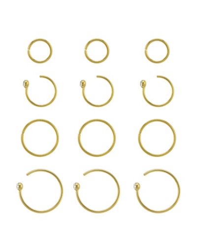 Multi-Pack CZ Goldtone Hoop Nose Rings 12 Pack - Gauge