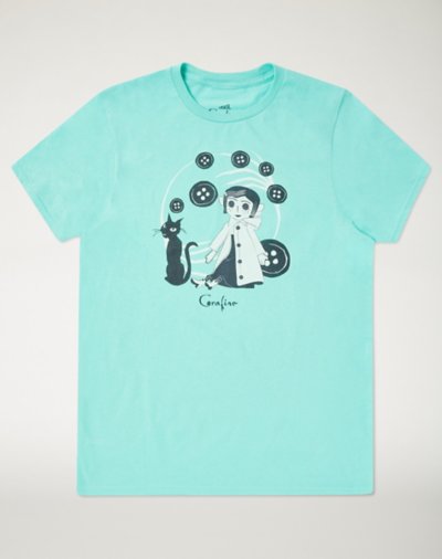 Any fan of the movie Coraline will love adding this officially licensed Coraline Cat T Shirt to their casual look. This Coraline tee is sure to make any fan of the film happy and is the perfect choice for binge-watching movies on the couch all day. Officially licensed Exclusively at Spencer's Crewneck Short sleeves Tagless Material: Cotton Care: Machine wash Imported This shirt is Unisex Sizing only For a fitted look, order one size smaller than your normal size.