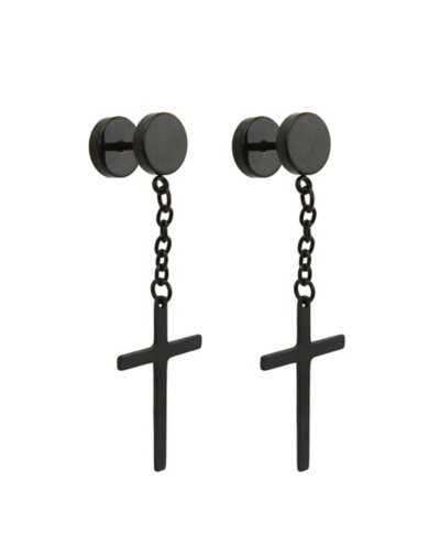 Black Cross Chain Dangle Fake Plugs - Gauge