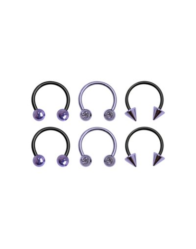 Buy Multi-Pack Ombre Black and Purple Horseshoe and Captive Rings 6 Pack for $19.99 at @ Spencersonline.com