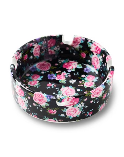 Upgrade your smoke style with this floral and fashionable ashtray! Flower pattern against a black ashtray makes for the perfect mix of pretty and powerful. Light up like a boss. Dimensions: 3.375"H x 3.375"W x 1.1875" D Material: Stoneware Care: Hand wash Imported.