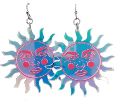 Buy Holographic Sun Face Dangle Earrings for $12.99 at @ Spencersonline.com