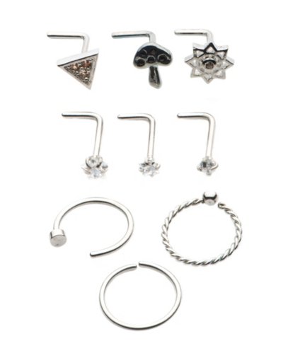 Buy Multi-Pack CZ Mushroom Flower Hoop Nose Rings and L-Bend Nose Rings 9 for $24.99 at @ Spencersonline.com
