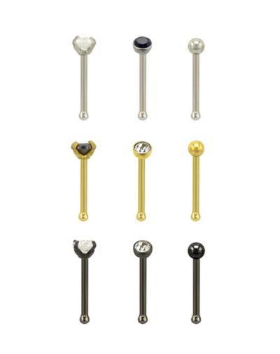 Includes: 9 Nose pins Piercing Type: Nostril Material: 316L surgical steel Gauge: gauge/0.8mm Length: 8mm Stone Type: Cubic zirconia Jewelry Care: Clean with antibacterial soap and warm water Piercing Care: Clean withH2Ocean Aftercare Spray(sold separately) or saline solution Imported Note: Do not use any harsh, alcohol-based chemicals as this may cause tarnishing Surgical steel may contain trace amounts of nickel Wear in healed piercings only. If irritation occurs, remove immediately This is a decorative item and should not be worn to sleep.