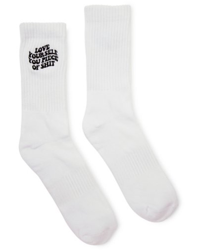 Buy Love Yourself Crew Socks for $9.99 at @ Spencersonline.com