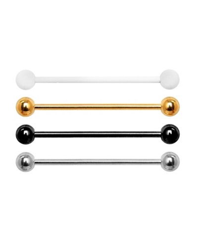 Exclusively at Spencer's Includes: 4 Barbells Piercing Type: Industrial Barbell Material: 316L Surgical steel Accent Material: Metal alloy Plating: Ion plated Gauge: Gauge/1.6mm Length: 1 1/4" Ball Size: 5mm Threaded closure Jewelry Care: Clean with antibacterial soap and warm water Piercing Care: Clean with saline solution Imported Note: Do not use any harsh, alcohol-based chemicals as this may cause tarnishing Do not over-thread or apply excess pressure when adding/removing beads as breakage could occur Surgical steel may contain trace amounts of nickel.