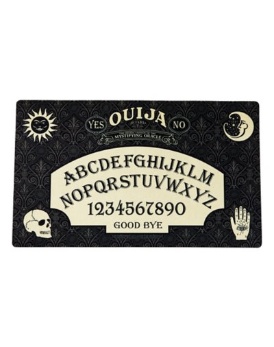 Dare to enter the other side when using this Ouija board doormat. Your house will surely make contact with all types of ghosts and spirits this Halloween! Officially licensed Dimensions: 28.5" L x 17.5" H Material: Recycled crumb rubber back Care: Spot clean Imported.