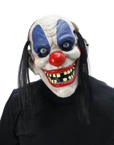 A trip to the circus, anyone? Give your fellow partygoers some terrible thrills with our Dummy Crackling Clown Half Mask! This mask's distorted, grotesque grin and piercing stare inspire more fear than they do laughter. Dimensions: Height: About 9.5" at highest point Width: About 8" at widest point Depth: About 5.2" Material: Polyvinyl chloride Care: Spot clean Imported One size fits most.