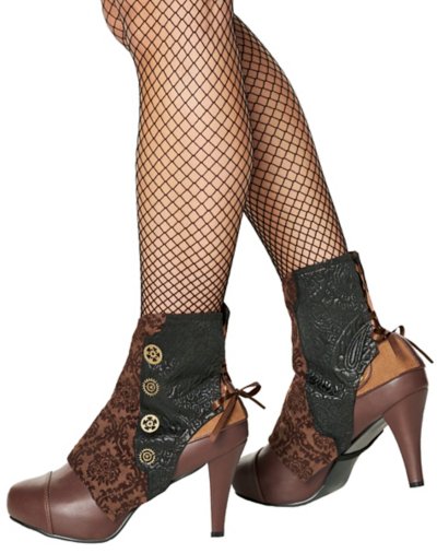 Perfect your steampunk costume with these printed shoe covers! These decorative shoe covers feature a steampunk-inspired print. Lace-up closures and under-the-heel straps ensure that your shoe covers stay in place all night long. Tie-back closure Material: Polyester Care: Spot clean Imported One size fits most.