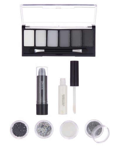Rule all the skeletons in the land this Halloween when you arrive wearing this Skeleton Royalty Makeup Kit. All the undead will be bowing at the knees once they get a glimpse of your beautiful skeleton look at the next costume party. Includes: 4 Glitter pots 6 Eyeshadows Adhesive glue Eyeshadow applicator Imported Note: Do not use on broken, blemished or sensitive skin. See packaging for more information.