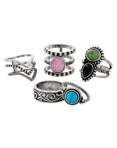 Buy Multi-Pack Silvertone Pink Green Black Blue Stone Rings - 5 Pack for $12.99 at @ Spencersonline.com