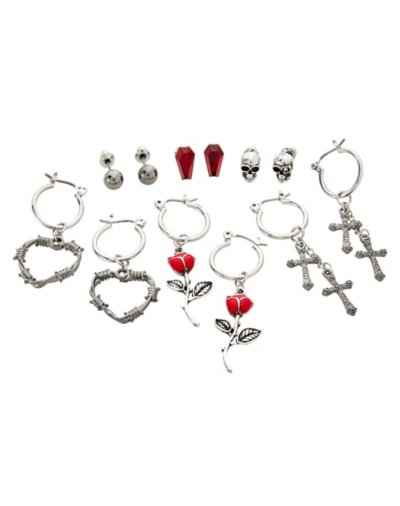 Buy Multi-Pack Silvertone Heart Rose Cross Coffin Earrings - 6 Pair for $14.99 at @ Spencersonline.com