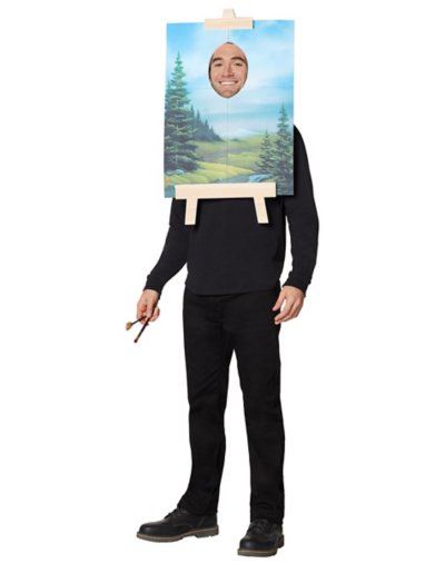 We dont make mistakes; we just have happy accidents. Grab your brush, beat the devil out of it, and get ready to experience The Joy of Painting first-hand with this officially licensed Bob Ross painting costume! This delightfully colorful costume is strewn with Bob Rosss happy trees and little clouds (painted, of course, with his signature wet-on-wet technique). This Halloween, take a page from Bob Rosss book (well, easel) with this scenic costume, available exclusively at Spirit Halloween! Officially licensed Includes: Bob Ross painting costume Dimensions: 25.5 L x 19 W Back Velcro closure Material: Polyester Care: Spot clean Imported 3D fit Note: Shirt, shoes, pants, and brush props sold separately.