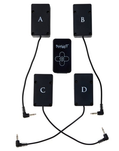 Patent Approved. Avoid the hassle of walking around to turn on all of your animatronics, and activate them all at once with this handy-dandy multi-prop remote! Control up to four animatronics at once, and make bringing your spooky scene to life an absolute breeze. And with each box labeled with the correct letter, you'll never have to second-guess which button will activate which animatronic! Exclusively at Spirit Patented Includes: 1 Remote 4 Receivers Battery Type: 4 LR44 batteries (remote), 8 AAA batteries (receivers) (batteries not included) Remote Dimensions: 2.75"H x 1.5"W x .625"D Receiver Dimensions: 2.1"H x 1.5"W x 1.375"D Weight: .44 pound Material: Plastic, metal Care: Spot cle.