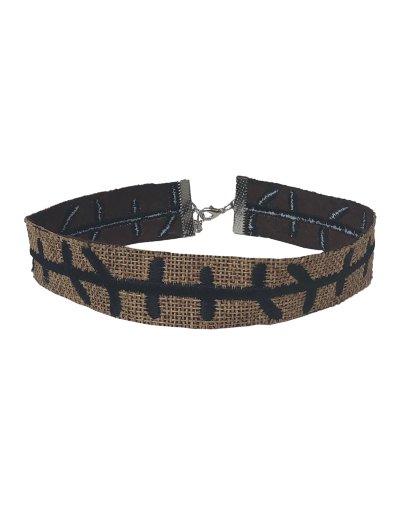 Scare with flair this Halloween! Stitched with style, this burlap choker is the perfect accessory for any chic scarecrow. Dimensions: 12.05 L x 1 W Material: Flax burlap Care: Spot clean Lobster clasp closure Imported.