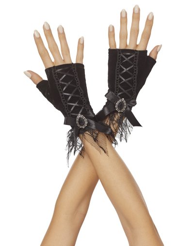Complete your witchy look in style when you rock thesevelvet witch gloves! Featuring gorgeouslace detail and faux gems, these gorgeous gloves are perfect for casting spells and brewing potions all Halloween long. Dimensions: 8"H x 4"W Material: Polyester, spandex Care: Spot clean Imported.