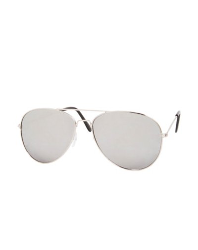 You'll be flying high on Halloween when you top off your costume with theAviators. This pair of classic sunglasses feature the aviator shape with silver lenses.Silver Aviators Materials: Metal.