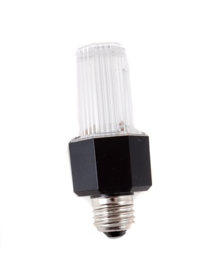 Disco isn't back, but this innovative, screw-in-anywhere strobe light has reinvented the classic light for Halloween. Add spooky Halloween lighting to any space with this intense 5-watt bulb, which produces 20-30 flashes of light per minute. These beauties will allow you to create a haunted house or insane asylum in an instant! Bulb Type: 5 Watt Dimensions: 2" H X 2" W X 4.75" D Material: Glass, metal, plastic Imported Note: Recommended for use in covered areas.