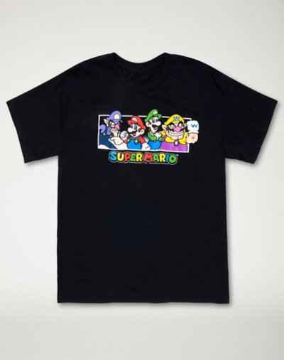 Let's-a go! Power up your style with this Super Mario Bros T Shirt! This officially licensed tee is a perfect choice for any gamer looking for a classic addition to their wardrobe, featuring fan-favorite brothers Mario and Luigi as well as Wario and Waluigi. Slip into this look and start your Mushroom Kingdom adventure! Officially licensed Crewneck Short sleeves Material: Cotton Care: Machine wash; tumble dry low Imported This shirt is Unisex Sizing only For a fitted look, order one size smaller than your normal size.