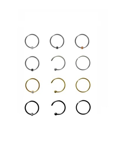 Buy Multi-Pack Goldtone and Black Assorted Hoop Nose Rings 12 Pack - Ga for $26.99 at @ Spencersonline.com