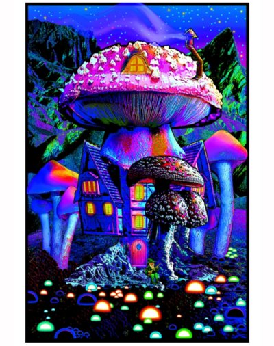 Buy Mushroom House Black Light Poster for $12.99 at @ Spencersonline.com