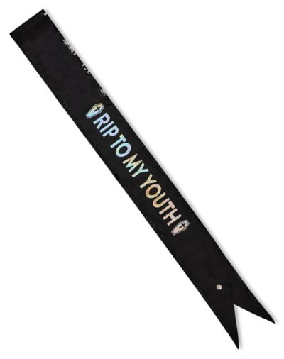 Bring on the funny birthday party vibes with this RIP to My Youth Sash! Give your bestie this sash and help them celebrate a milestone birthday. Exclusively at Spencer's Dimensions: 4" x 68" Material: Polyester Care: Spot clean Imported.