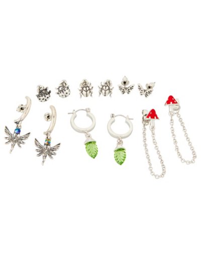 Exclusively at Spencer's Includes: 6 Pairs of earrings Piercing Type: Ear Material: Zinc, plastic, glass Post and hinge closure Jewelry Care: Wipe clean or useSpencer's Jewelry Wipes Imported Note: Do not use any harsh, alcohol-based chemicals as this may cause tarnishing Wear in healed piercings only. If irritation occurs, remove immediately This is a decorative item and should not be worn to sleep.