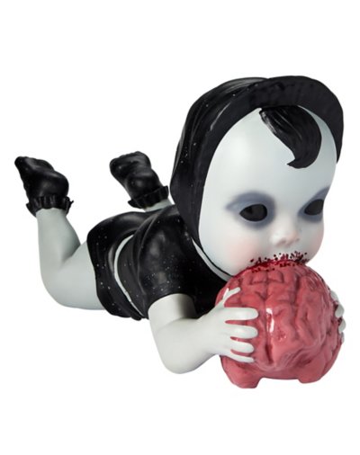 Aw. The baby is hungry...for BRAINS! Chompin' Connie is a zombie baby who's ready to feast. If you're looking for a Halloween decoration that'll really freak out your friends, this flesh-eater is exactly what you need. Dimensions: 20" H x 7" W x 11" D Material: Plastic, latex Care: Spot clean Imported WARNING: Do not use if allergic to latex.