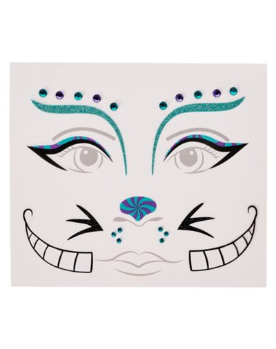 Complete your cat costume with face decals sure to add some feline flair to your look! These Mischievous Cat Face Decals, featuring purple and teal detailing, are certain to complement your style! Includes: 1 sheet of face decals Dimensions: 4" L x 5" W Material: Polyethylene terephthalate, acrylic, acrylic resin, ethyl acetate Imported.