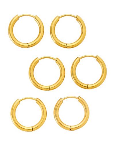 Includes: 3 Pairs of earrings Piercing Type: Ear Material: 316L surgical steel Exterior diameter: 14mm Interior diameter: 10mm Clip closure Jewelry Care: Clean with antibacterial soap and warm water Piercing Care: Clean withH2Ocean Aftercare Spray(sold separately) or saline solution Imported Note: Do not use any harsh, alcohol-based chemicals as this may cause tarnishing Surgical steel may contain trace amounts of nickel Wear in healed piercings only. If irritation occurs, remove immediately This is a decorative item and should not be worn to sleep.
