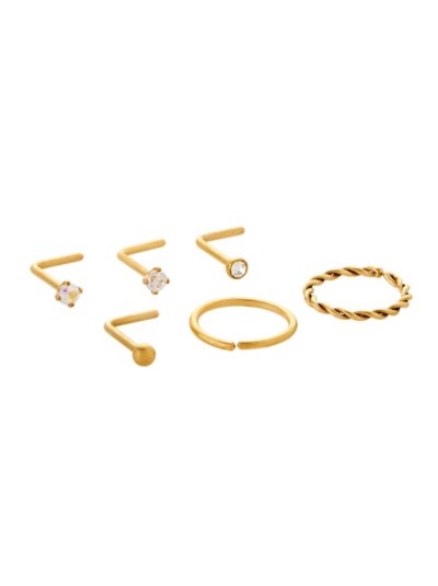 Buy Multi-Pack CZ Titanium Goldplated Hoops and L-Bend Nose Rings 6 Pack for $24.99 at @ Spencersonline.com