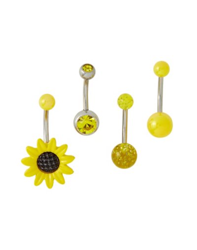 Buy Multi-Pack CZ Sunflower Belly Rings 4 Pack - Gauge for $16.99 at @ Spencersonline.com