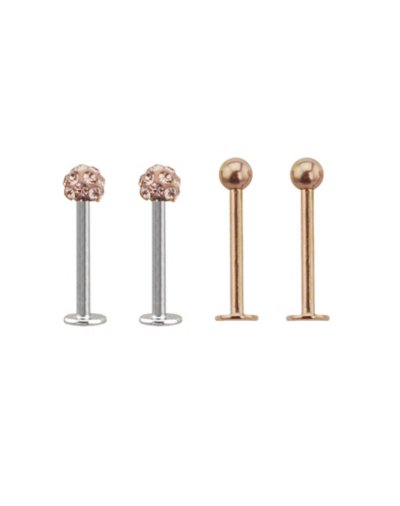 Buy Multi-Pack Rosegold Plated CZ Dimple Labret Lip Rings 4 Pack - Gaug for $16.99 at @ Spencersonline.com
