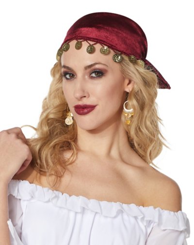 Top off your fortune teller costume with this velour headwrap complete with hanging coins. You'll look like you're ready to peer into the future in style. Material: Polyester Care: Spot clean Imported One size fits most.