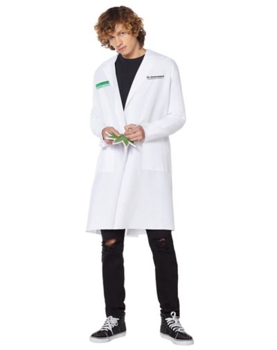 Paging Dr. Greenweed. Dr. Greenweed is needed at the party. In this Leaf Doctor Costume, your friends will rely on their director of distribution to hook them up on your very own leaf prescription pad. Exclusively at Spirit Halloween Includes: Jacket Leaf notepad Long sleeves Zipper closure Length: About 36.5" from shoulder to hem Material: Polyester Care: Hand wash Imported Note: Pants and shoes sold separately.