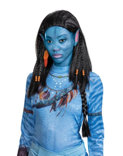Become part of the Na'vi tribe this Halloween with this officially licensed Neytiri Wig. This stylish wig features various braided details and looks just like it does in the film. Complete your Avatar costume with this wig and you'll look just like you came from Pandora. Officially licensed Length: 29" Material: Olifin hair, polyester mesh Care: Do not wash or style this wig Imported.