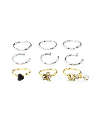 Buy Multi-Pack CZ Heart Goldtone and Silvertone Hoop and Half Hoop Nose Ri for $24.99 at @ Spencersonline.com