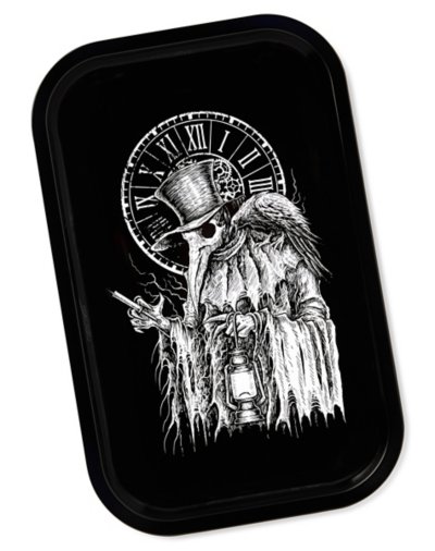 Put an artsy spin on your belongings with this plague doctor tray! Roll out this tray any time you want to enjoy some of your prized possessions. Officially licensed Exclusively at Spencer's Dimensions: 12" L x 7" W Material: Tin Care: Spot clean Imported.
