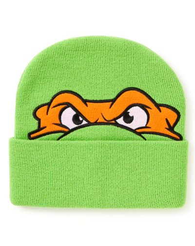 Look like you're ready for sewer life with this Teenage Mutant Ninja Turtles Michelangelo face beanie hat! This warm and stylish hat will look amazing on any TMNT fan. Officially licensed Regular fit Mid crown Material: Acrylic Care: Hand wash Imported One size fits most.