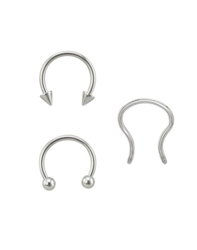 Buy Multi-Pack Silvertone Retainer and Horseshoe Septum Rings 3 Pack for $19.99 at @ Spencersonline.com
