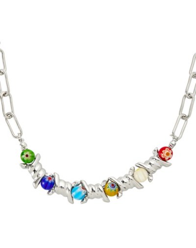 Multi-Color Bead and Barbed Wire Chain Necklace
